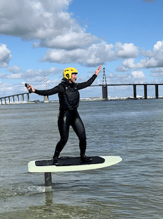 E-Foil en loire-atlantique avec des moniteurs diplômés d'état BPJEPS et une sécurité bateau.