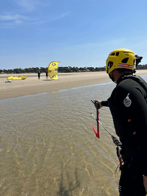 Cours en Bord de Plage : Pour les premières étapes et la maîtrise de l'aile dans peu d'eau.